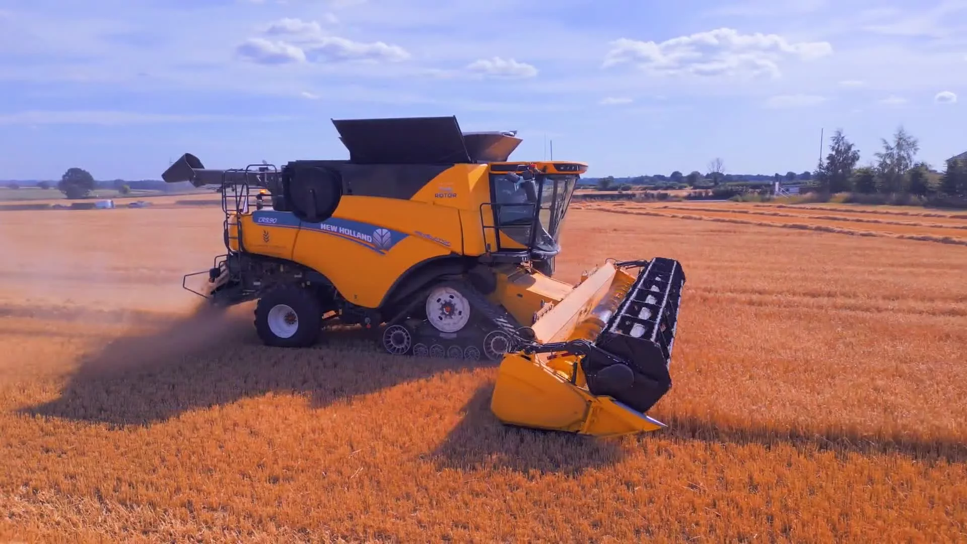 A highlights video of Small Acres harvesting barley with their New Holland CR combine. With Unimog and case Puma tractors on the grain cart.